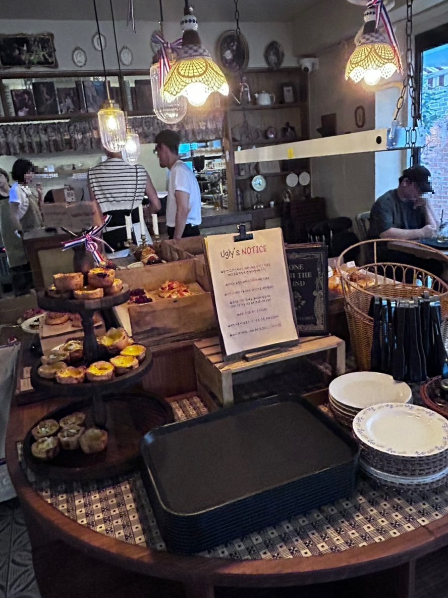 안에는 많은 페스츄리가 전시되어있어요. 배가 고프지는 않아서 디저트를 주문하지는 않았지만 저는 약과 쿠키가 눈에 띄네요 👀