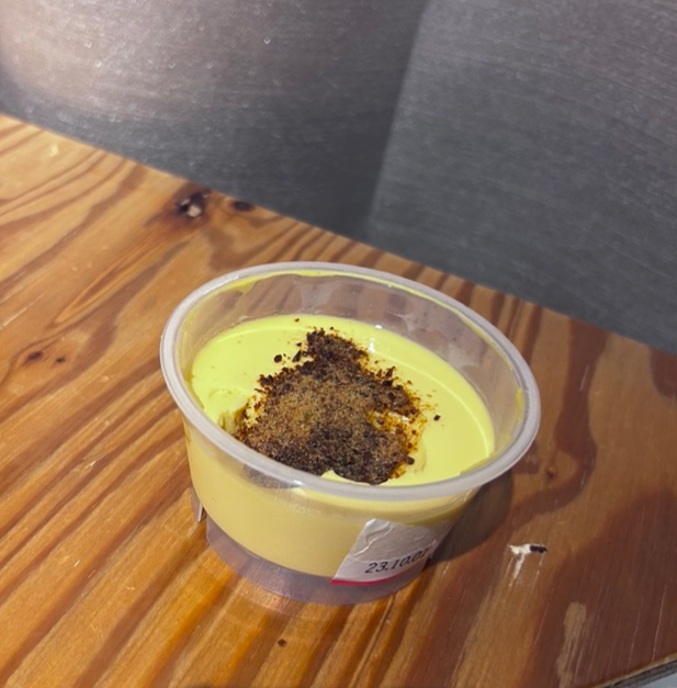 그다음 먹은 거는 꿀고구마 푸딩인데 고구마 좋아하면 맛있게 먹을 거예요. 이것도 첫날 먹은 푸딩 (로열 커스터드푸딩)과 함께 추천할 만합니다. 위에 카라멜 파우더를 뿌리는 것도 특징적이네요.