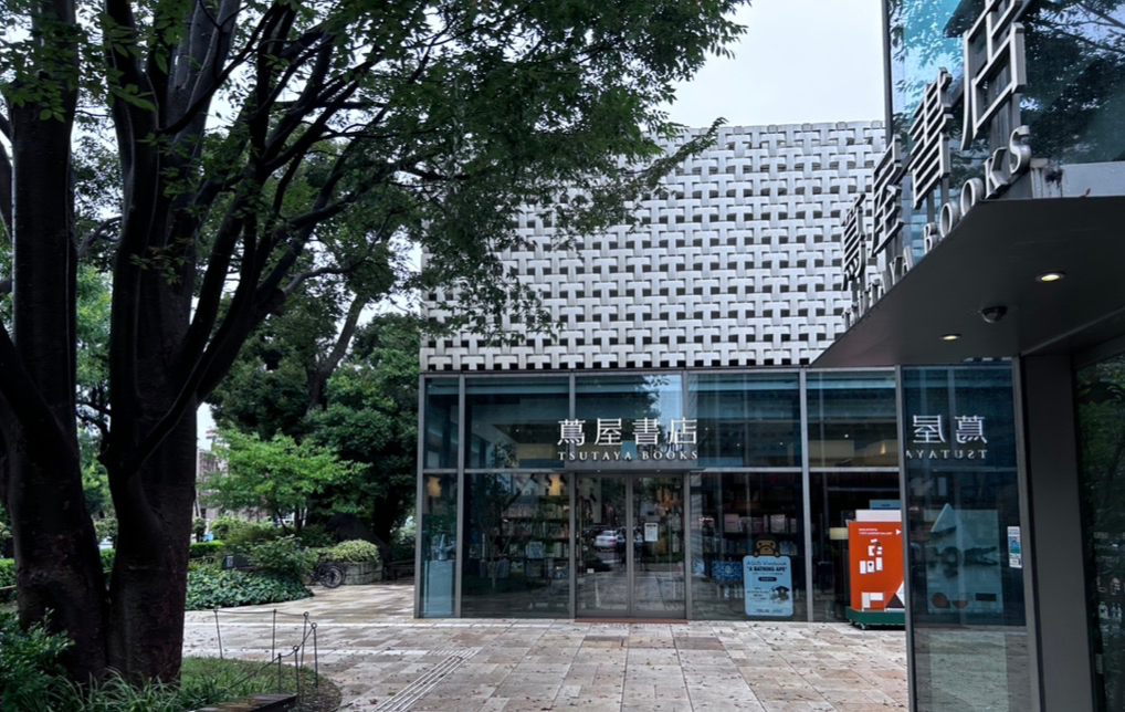 츠타야에 도착했을 무렵에는 비가 조금만 왔습니다. 건물 외벽에 볼 수 있는 흰색 패턴이 T같이 생겼는데 Tsutaya라서 그런 걸까요? 츠타야를 상징하는 문양인 것 같습니다.