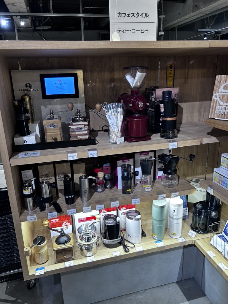 커피 도구도 많습니다. 너무 탐나네요 (이 때는 몰랐는데 사진을 잘 보면 세라믹 커피 필터도 있습니다. 일본에는 꽤 흔한 것 같습니다.).