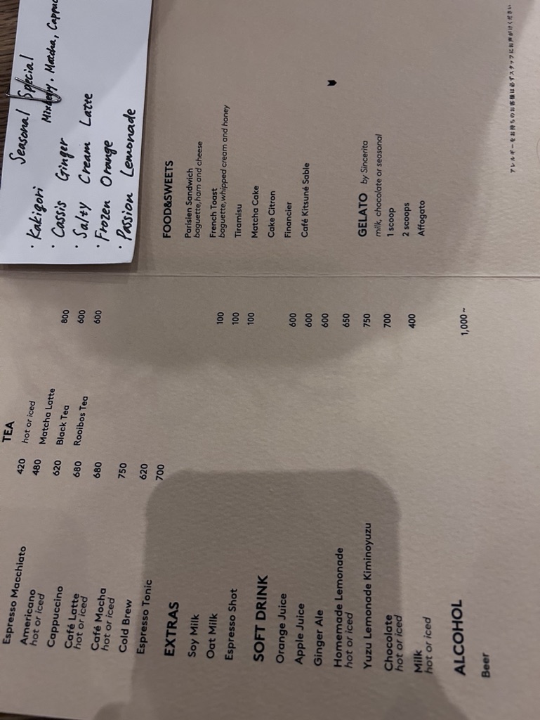 저녁 약속을 가기 전에 우연히 발견한 카페 키츠네에서 휴식을 조금 취했습니다. 메종키츠네 바로 옆에 있는 것을 봐서 역시 같은 브랜드인 것 같습니다. 근처에서 쇼핑하다 쉬어가기 좋은 위치입니다. 메뉴는 무난합니다.