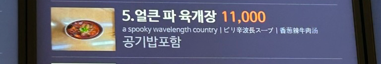 얼큰 파 육개장 = a spooky wavelength country (으스스한 파장의 나라...?)