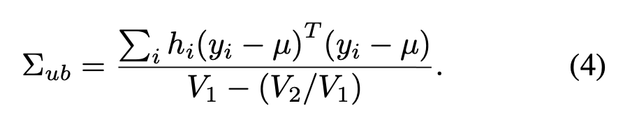 이 식은 sample bias의 문제가 있어서 unbiased covariance matrix를 사용하게 되는데, 다음과 같이 표현됩니다 (Bessel's correction 참고):