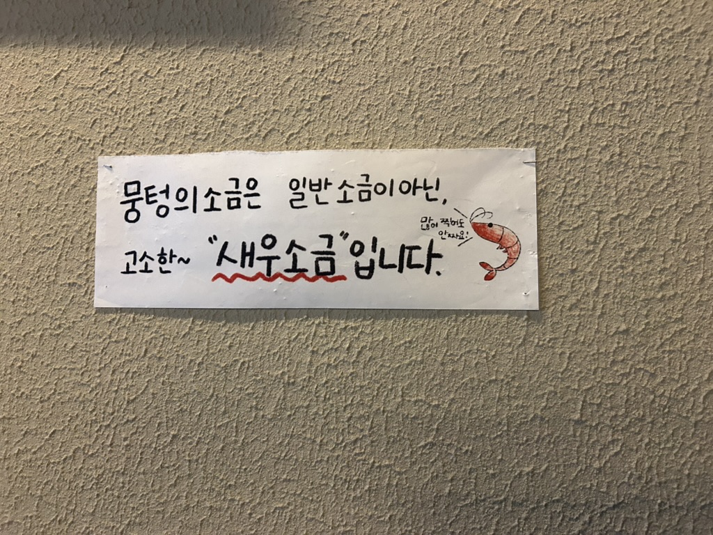 소금은 새우소금이라네요ㅎㅎ 새우 못 드시는 분들은 따로 일반 소금 달라고 하면 주십니다.