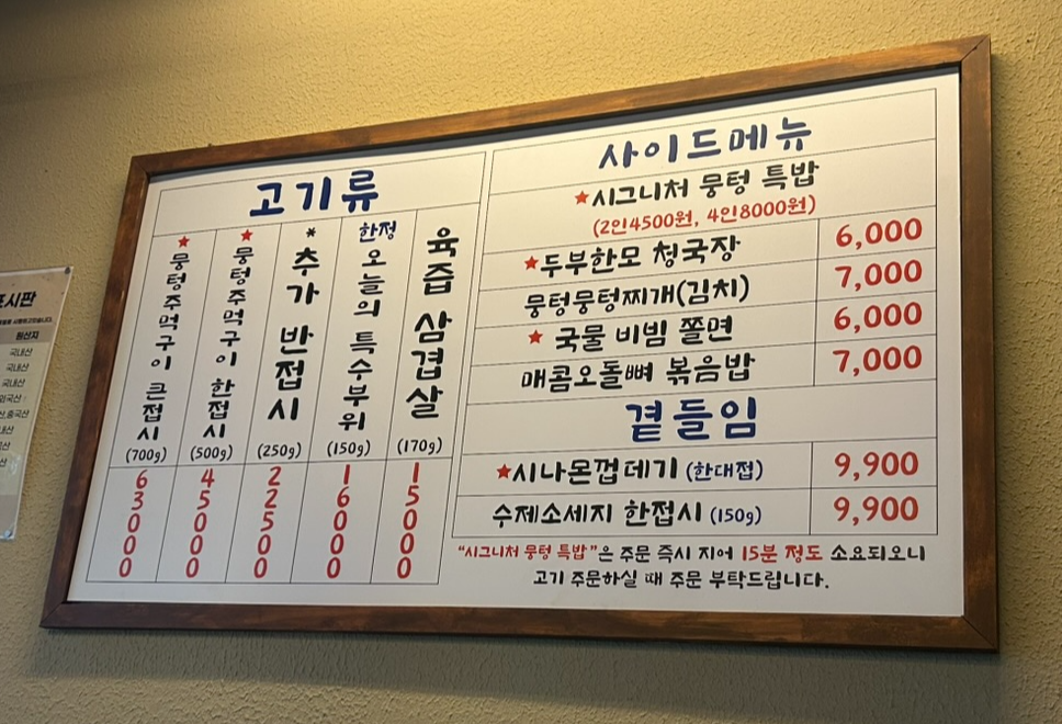 평소에 깔깔거리를 지나가면서 가보고 싶었던 돼지고기 숯불구이집 뭉텅