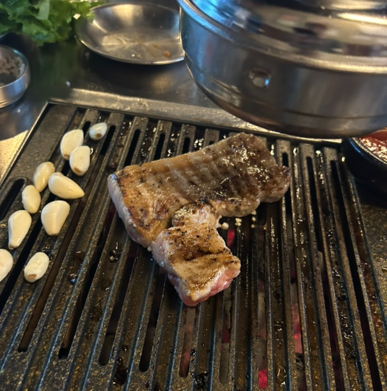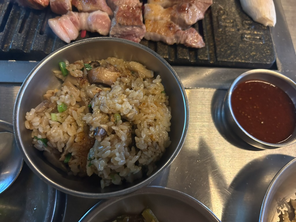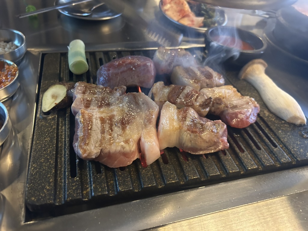 둘 다 잘먹는 편이라 삼겹살을 추가로 주문했는데요...