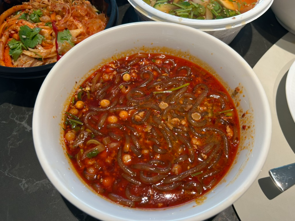 쏸라펀: 산라탕 비스무리한데 당면이 들어가 있습니다. 말린 완두콩? 이랑 고수가 별미예요.