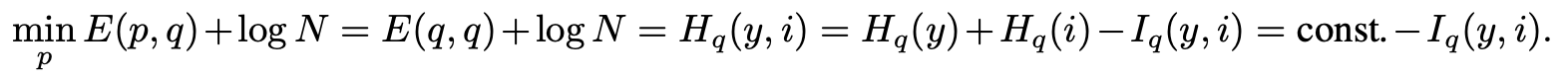 - Marginal distribution 이 q(i) = 1/N, q(y) = 1/K 이라는 가정을 했기 때문에 marginal entropy 도 \(H_q(i) = \log N, H_q(y) \log K\)로 고정된다. 따라서 다음과 같은 식을 얻을 수 있다