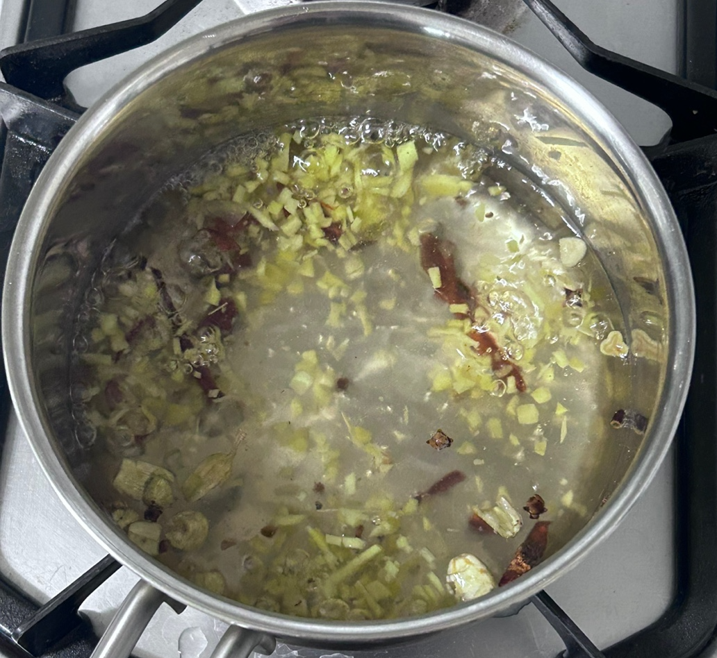2. 생강과 향신료를 물과 같이 끓여줍니다.