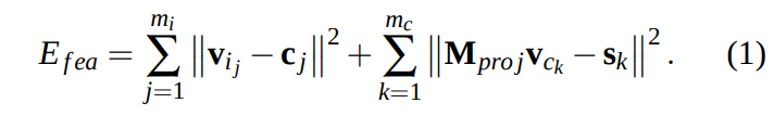 - 식 (5)를 통해서 initial mesh를 구하게 된다. 이 initial mesh를 추가적으로 deform해서 3D 데이터에 대응되는 정확한 mesh를 얻는다: