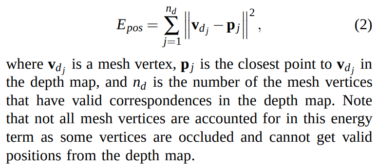 - \( E_{pos}\)는 depth map에 대한 energy term: