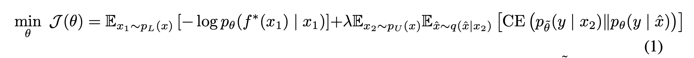 - 참고: image classification에서는 labeled example에 대해서 \( p_\theta (y|x)\)를 계산할 때 cropping, flipping 사용. Unlabeled data에 대해서 \( p_{\tilde{\theta}} (y|x)\)를 계산할 때도 동일한 augmentation 사용.