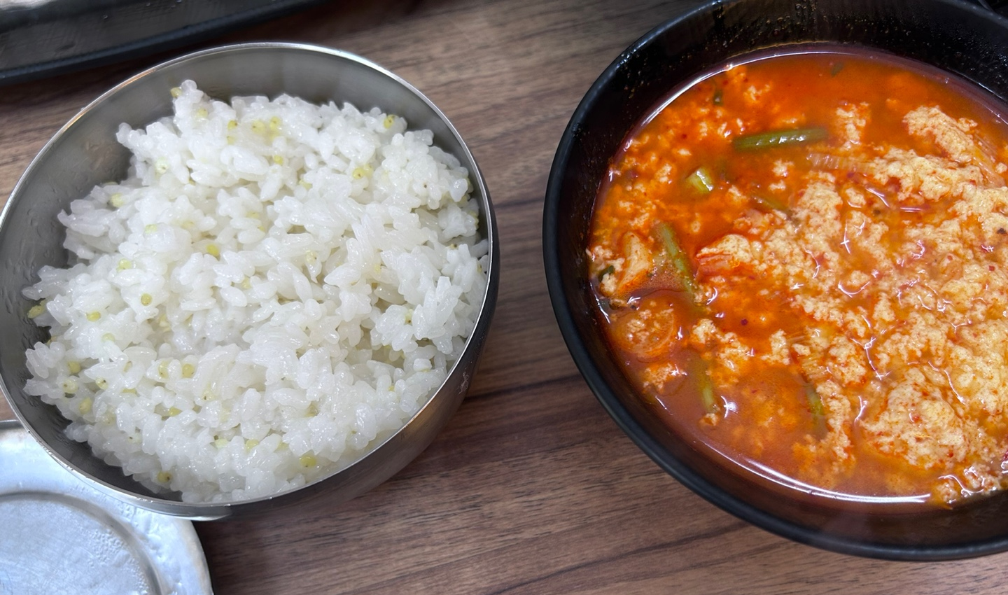 얼큰한 순두부 전골에 있는 미나리가 특징적이었고, 특히 밥이 맛있었어요! 전반적으로 특별히 맛있다고 느껴지지는 않았지만, 나중에 다시 한번 생각나는 그런 맛이었어요.