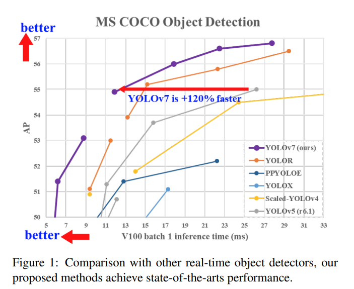 개요 논문 링크: https://arxiv.org/abs/2207.02696 이전 글: [논문 리뷰] YOLOv6 제목: YOLOv7: Trainable bag-of-freebies sets new state-of-the-art for real-time object detectors 노트: YOLOv6보다 성능은 조금 안 좋다 (YOLOv6가 더 늦게 나왔다) 주요 내용: E-ELAN 구조 제안 모델 사이즈를 키우는 방식 제안 RepConvN 블록 제안 Auxiliary detection head를 사용할 때 label assignment 하는 방식 제안 Convolotion & batch normalization 합치는 방법으로 속도 살짝 증가 Implicit knowledge 사용 모델 EMA 사용 ..